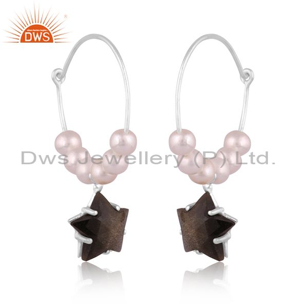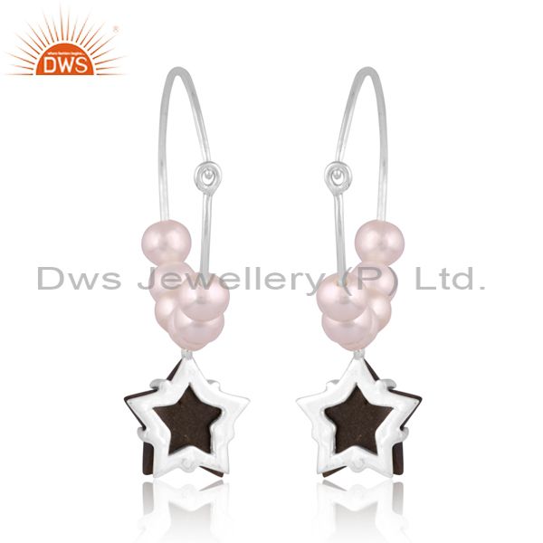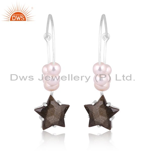 Silver Star Earrings With Gold Sheen Obsidian Checker Gem