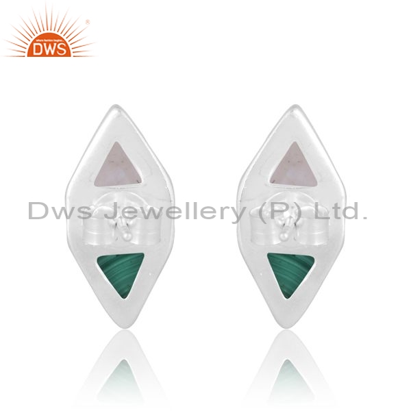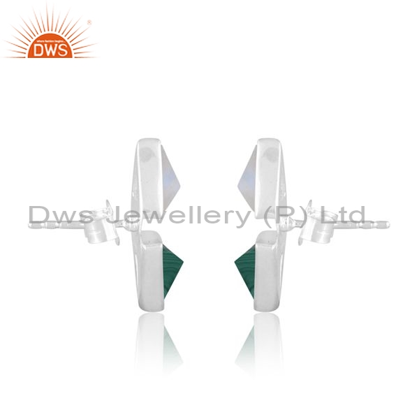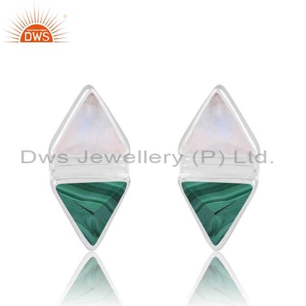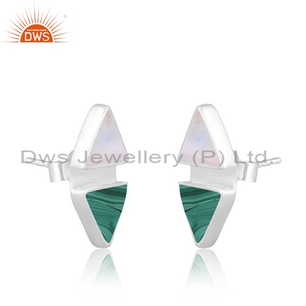 Silver Stud With Malachite And Rainbow Moonstone Triangle