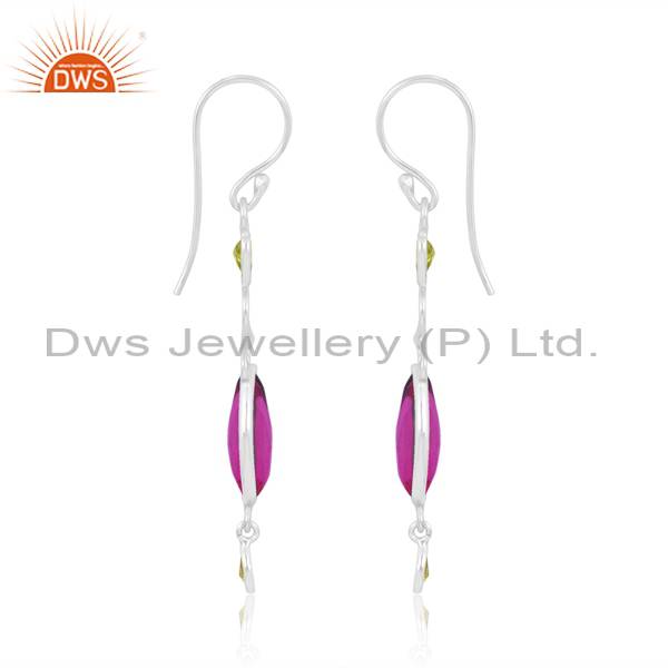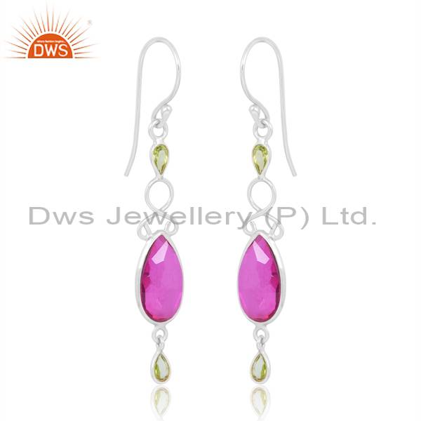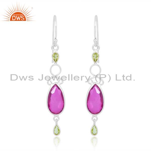 Silver White Doublet Rubellite Tourmaline Pear Earrings