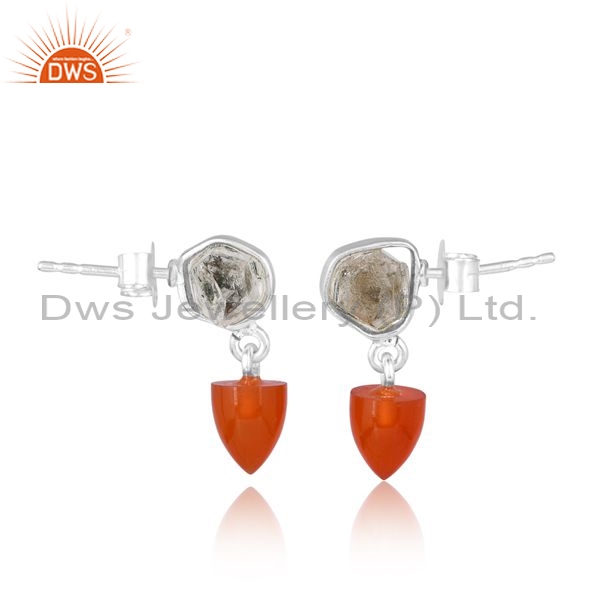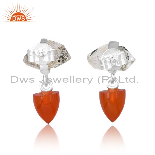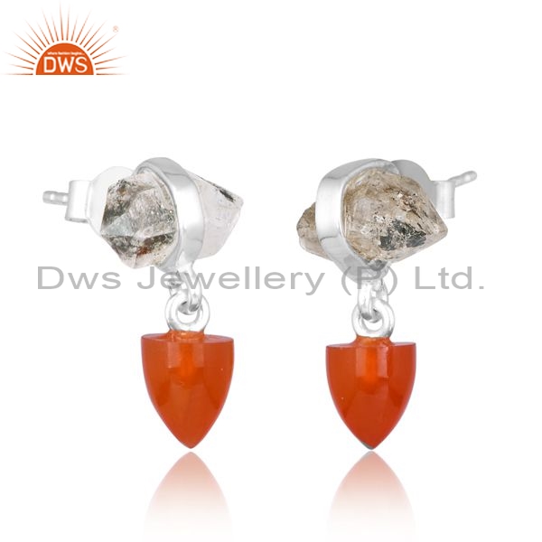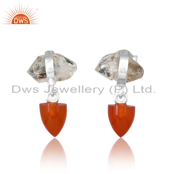 Silver White Drops With Carnelian And Herkimer Diamond Stone