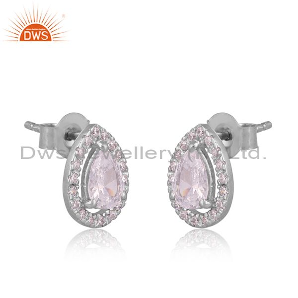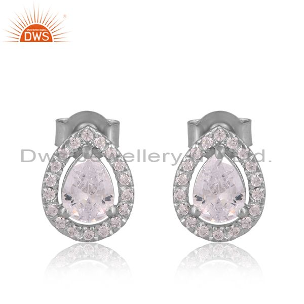 Silver White Earrings With Cubic Zirconia Pear And Round