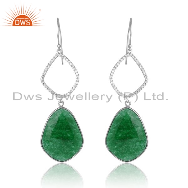 Silver White Stud With Aventurine Natural And Cubic Zirconia