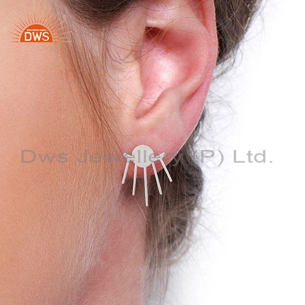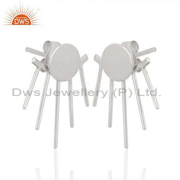 Simple Round EarJacket White Rhodium Plated Sterling silver Earring