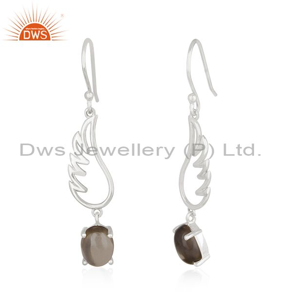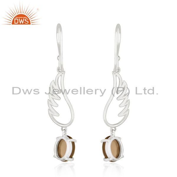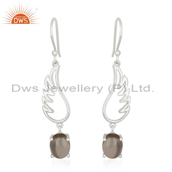Smoky Quartz 925 Sterling Fine Silver Angel Wing Earring Manufacturer