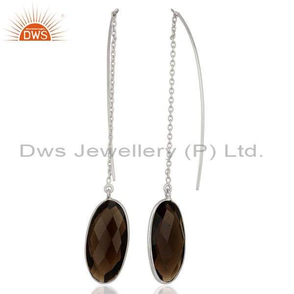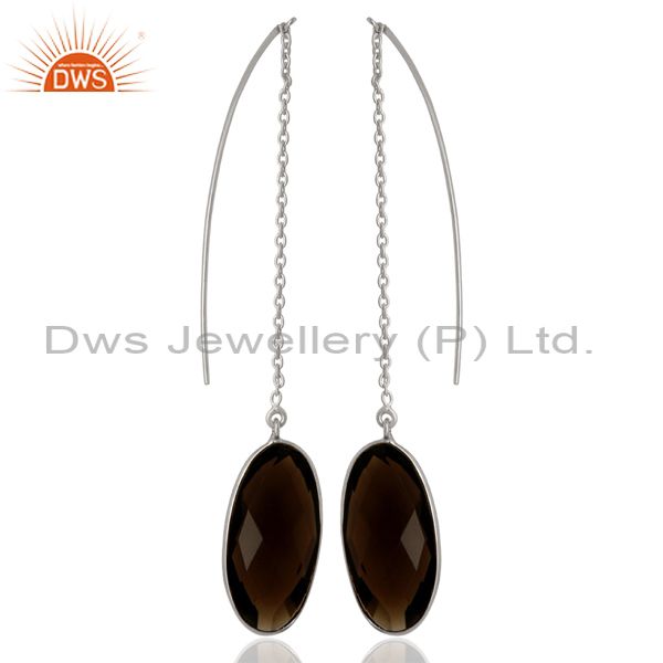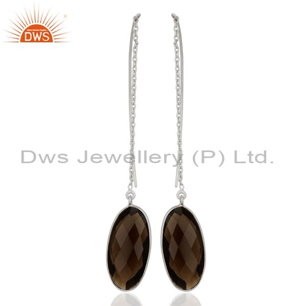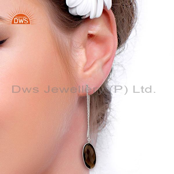 Smoky Quartz Gemstone 925 Sterling Fine Silver Chain Earring Supplier