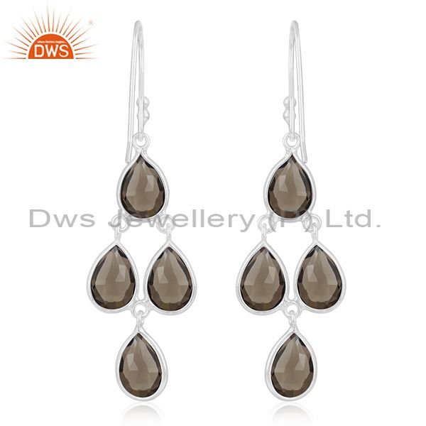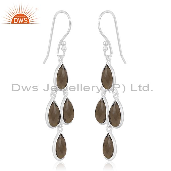 Smoky Quartz Gemstone Handmade Fine Sterling Silver Earring Jewelry Manufacturer
