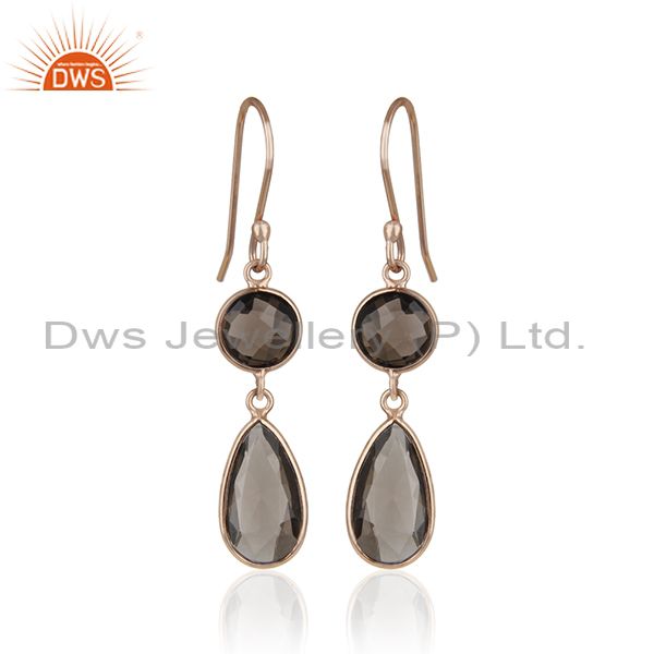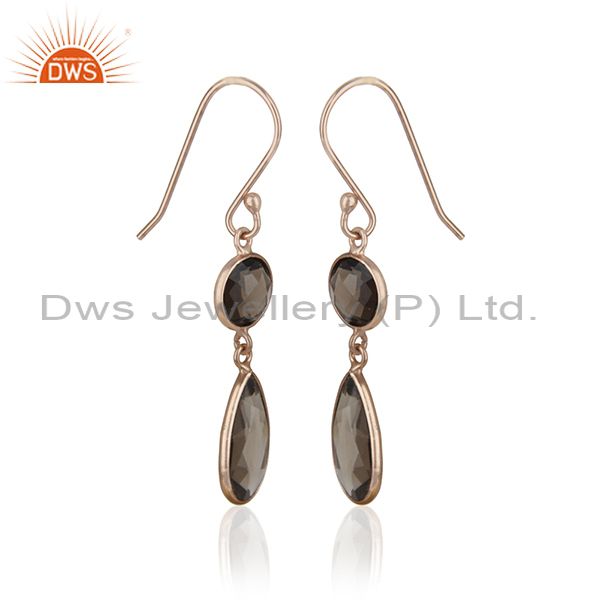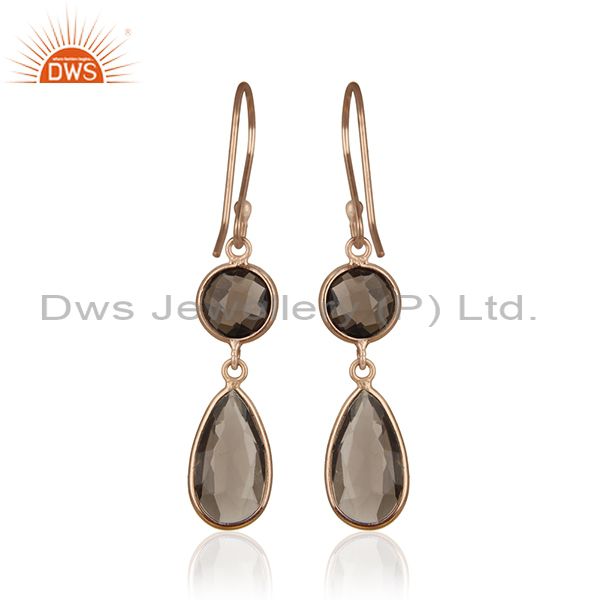 Smoky Quartz Gemstone Rose Gold Sterling Silver Customized Earring Manufacturers