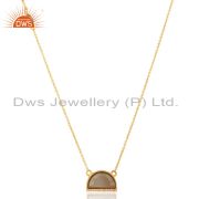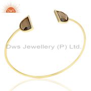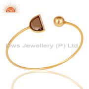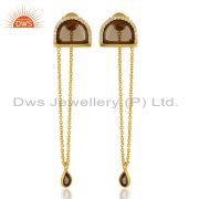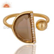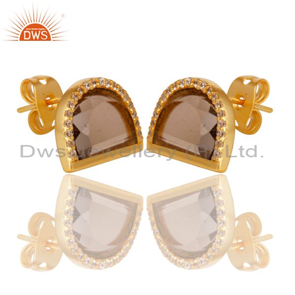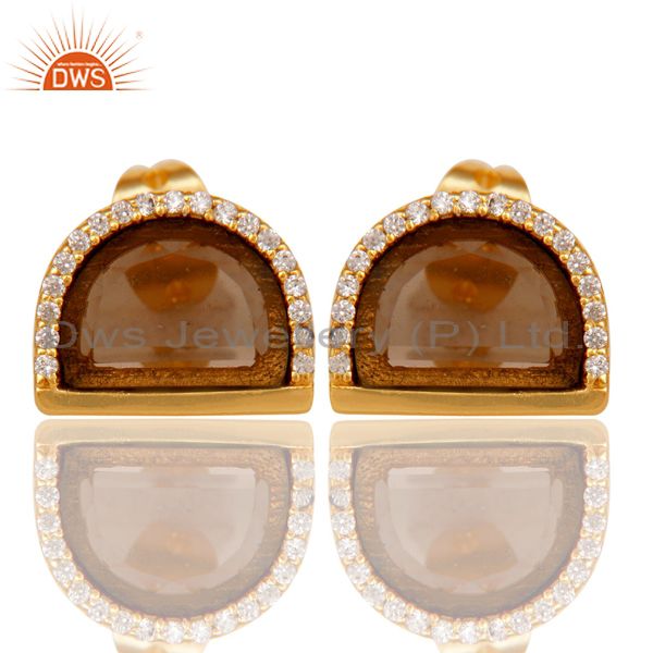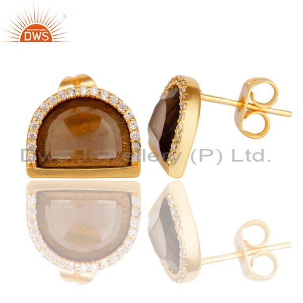 Smoky Topaz Half Moon Cz Stud Gold Plated 92.5 Sterling Silver Earring