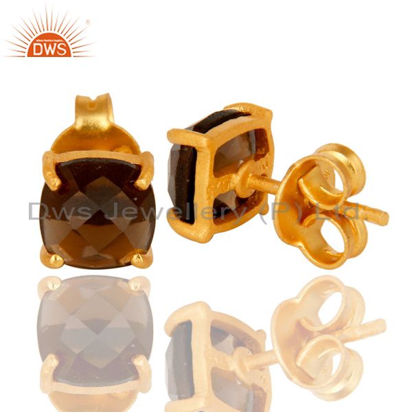 Smoky Topaz Rose Cut Stud Earring With 14K Gold Over Sterling Silver