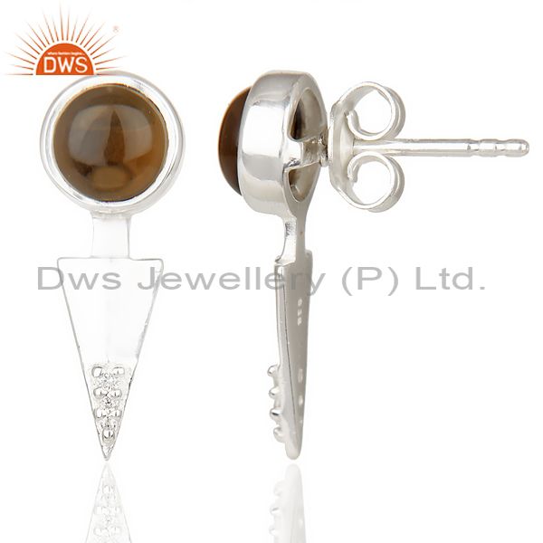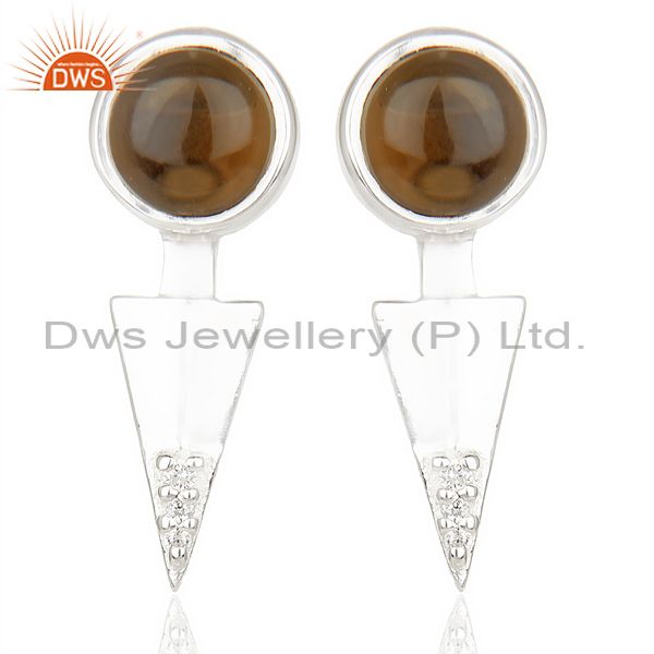 Smoky Topaz Studded Two Way Earring Double Jacket In Solid Silver
