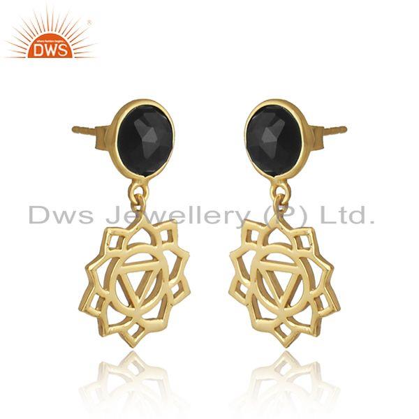 Solar Plexus Chakra Earring In Gold Plated Silver With Black Onyx