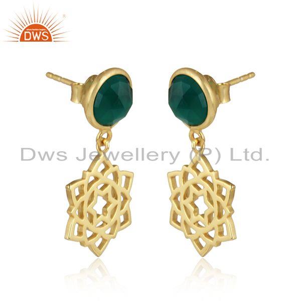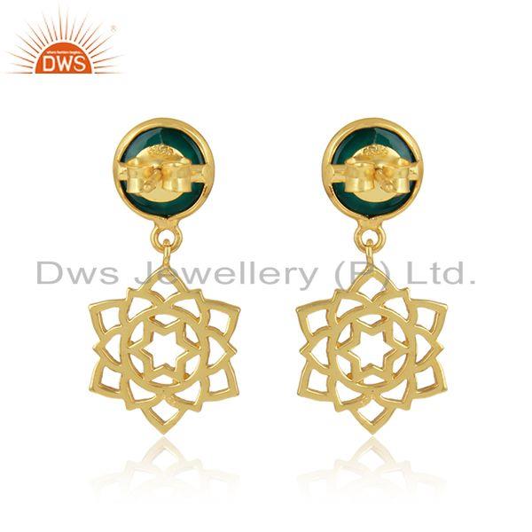 Solar Plexus Chakra Earring In Gold Plated Silver With Green Onyx