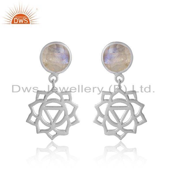 Solar Plexus Chakra Earring In Silver 925 With Rainbow Moonstone