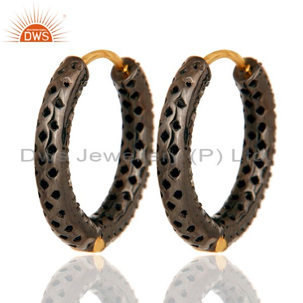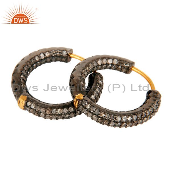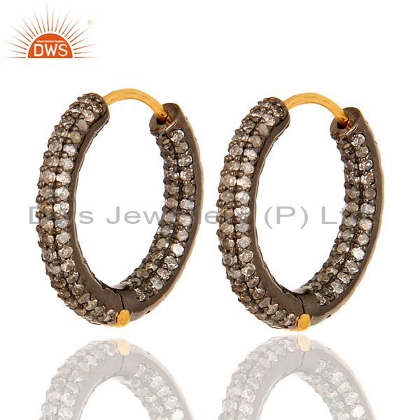 Solid 14K Yellow Gold Micro Pave Setting Round Diamond Hoop Earrings