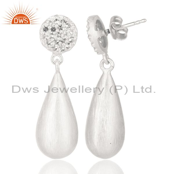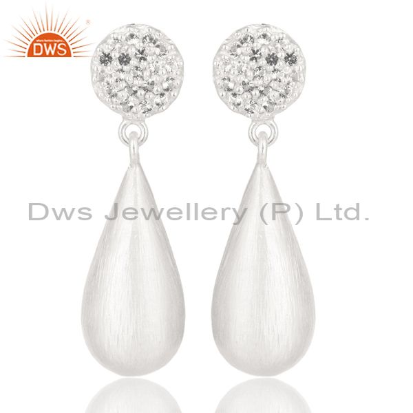 Solid 925 Sterling Handmade Silver White Topaz Gemstone Drops Earrings Jewelry