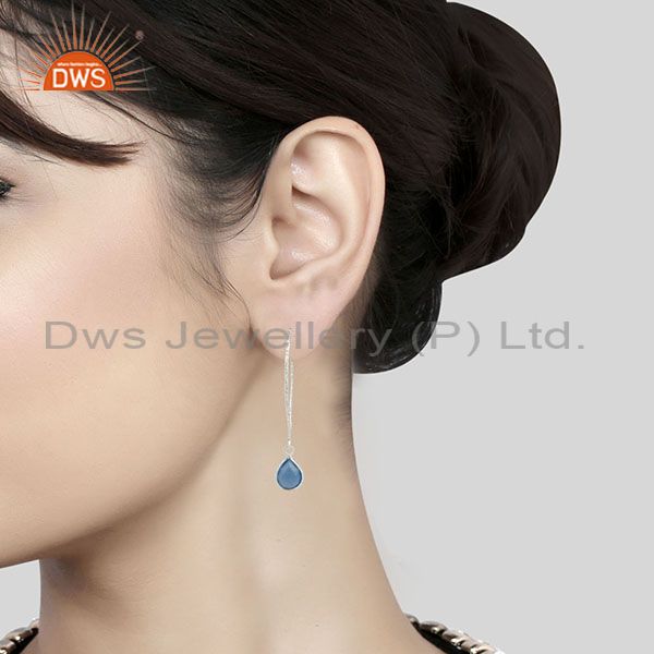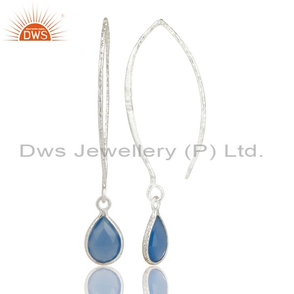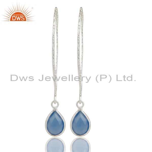 Solid 925 Sterling Silver Bazel Set Hoop In Hook Chalcedony Drops Earrings