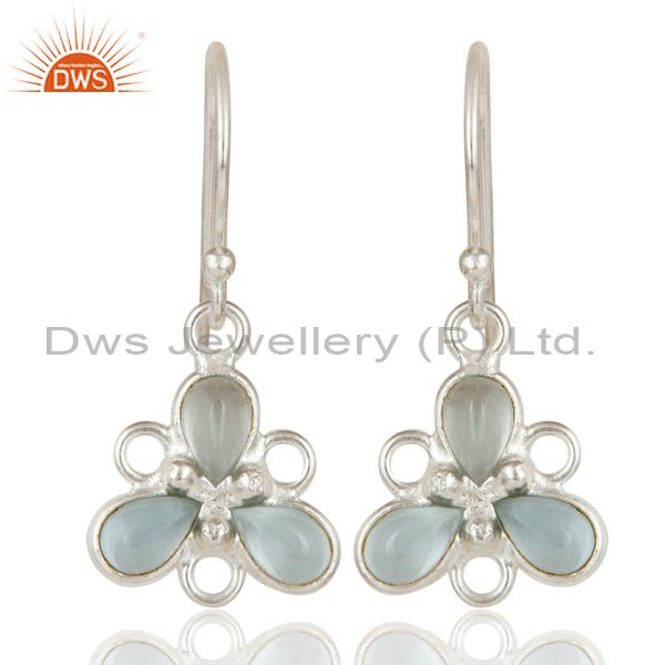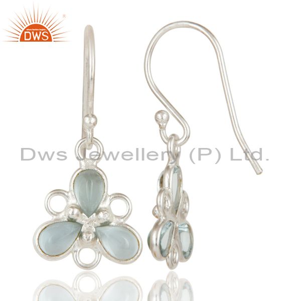 Solid 925 Sterling Silver Blue Topaz Gemstone Bezel Set Earrings Jewellery