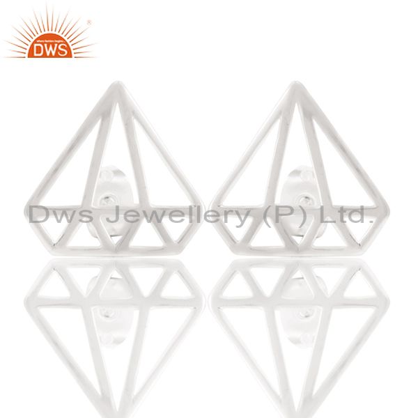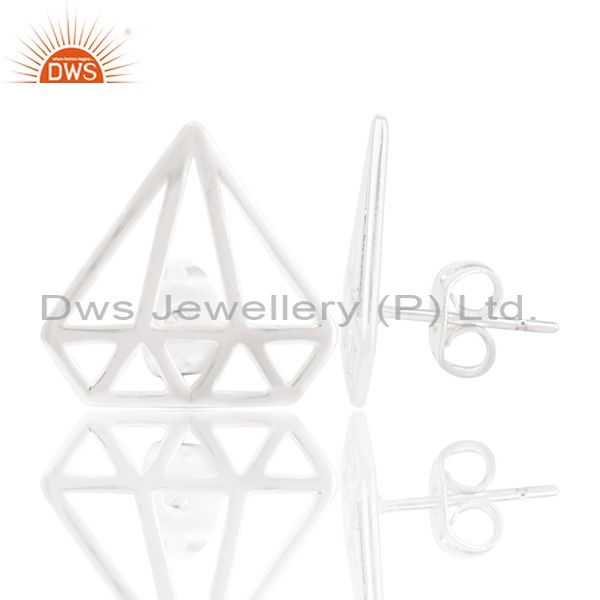 Solid 925 Sterling Silver Handmade Art Deco Design Studs Earrings Jewelry