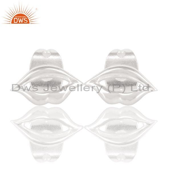 Solid 925 Sterling Silver Handmade Art Lips Design Studs Earrings Jewelry