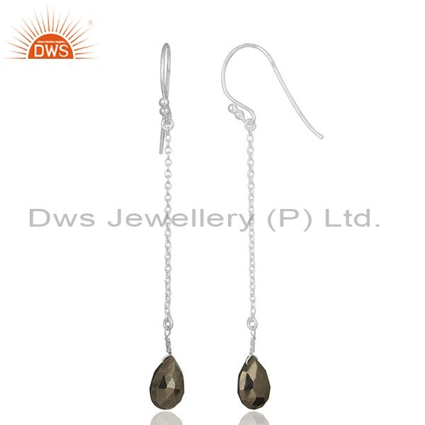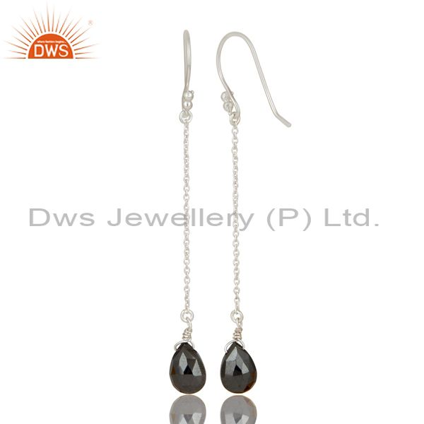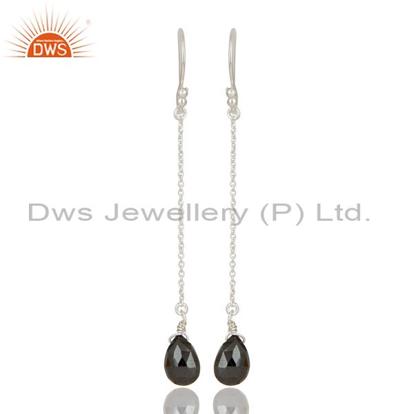 Solid 925 Sterling Silver Handmade Hematite Link Chain Dangle Earrings Jewelry