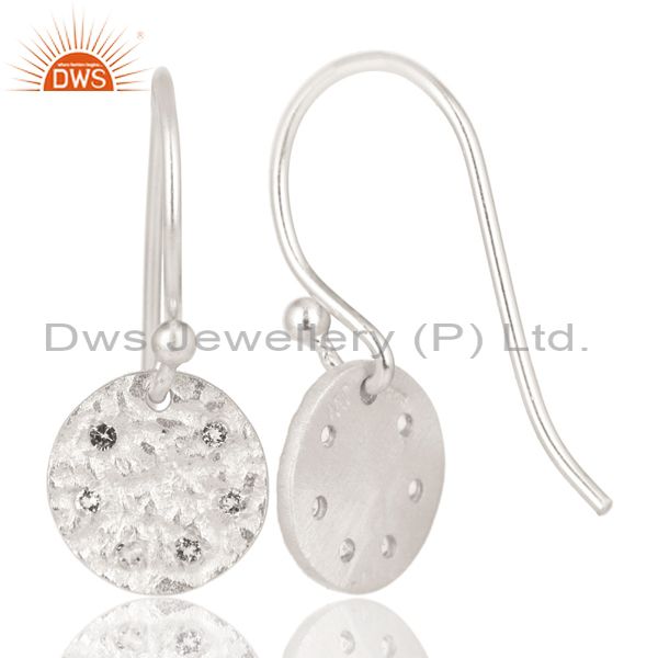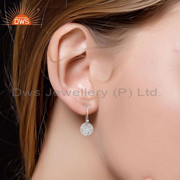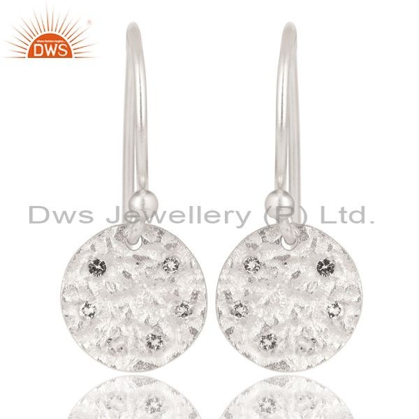 Solid 925 Sterling Silver Handmade White Topaz Disc Drops Earrings Jewelry
