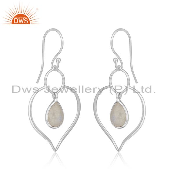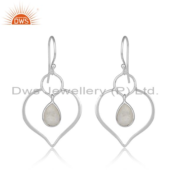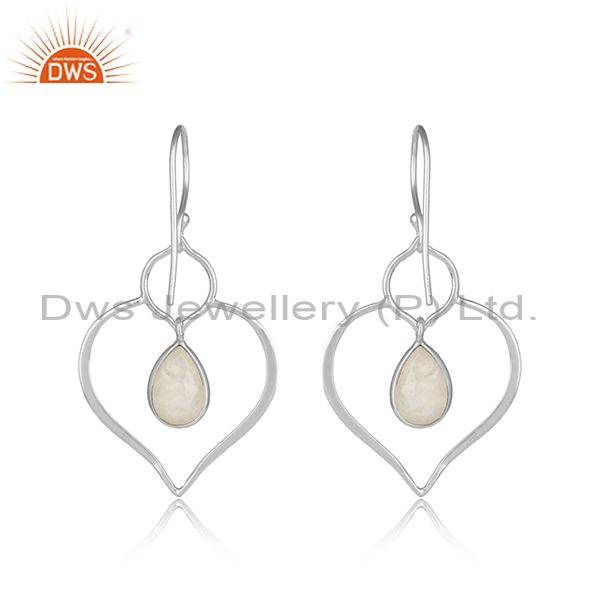 Solid 925 Sterling Silver Heart Shape Design Rainbow Moonstone Dangle Earrings