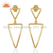Solid Sterling Silver Gold Plated Tirangle Design Drop Earring Jewelry