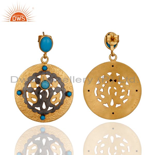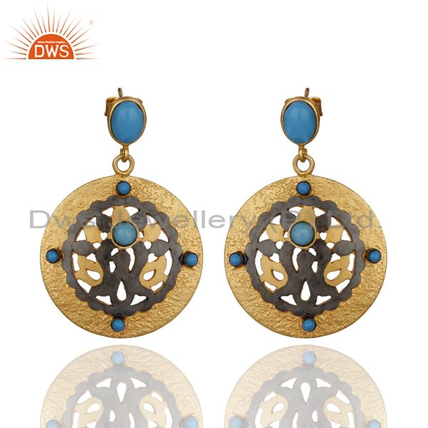 Solid Sterling Silver Gold Plated Turquoise Gemstone Dangle Earring