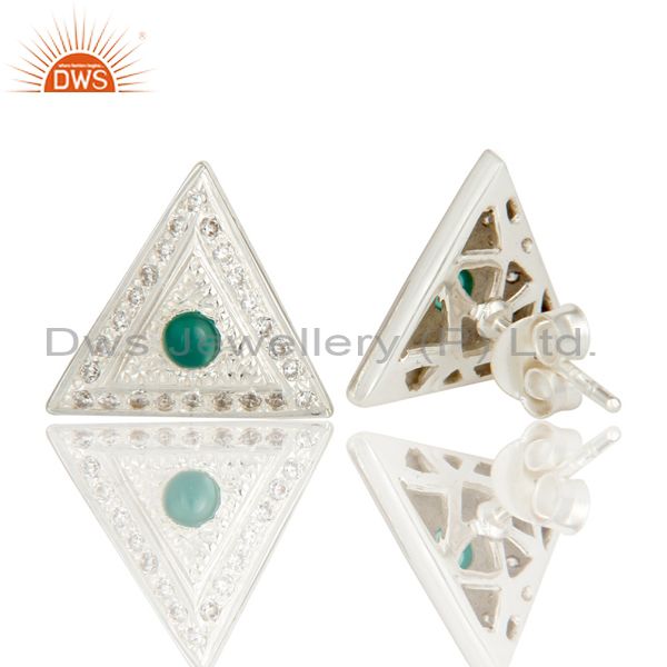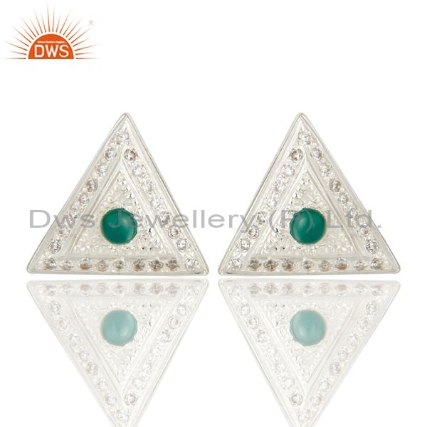 Solid Sterling Silver Green Onyx And Cz Stud Earrings For Her
