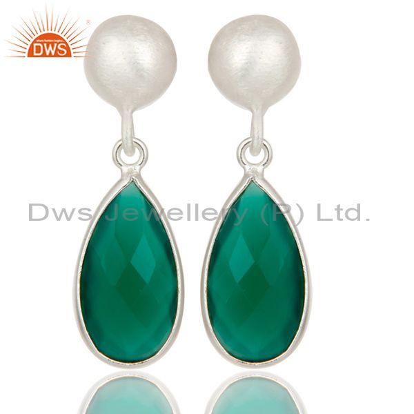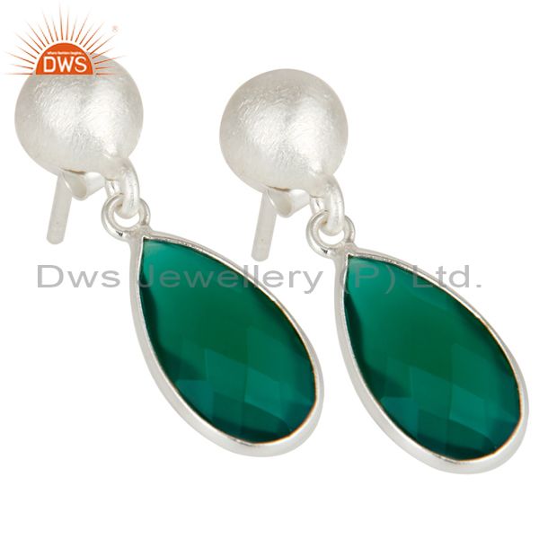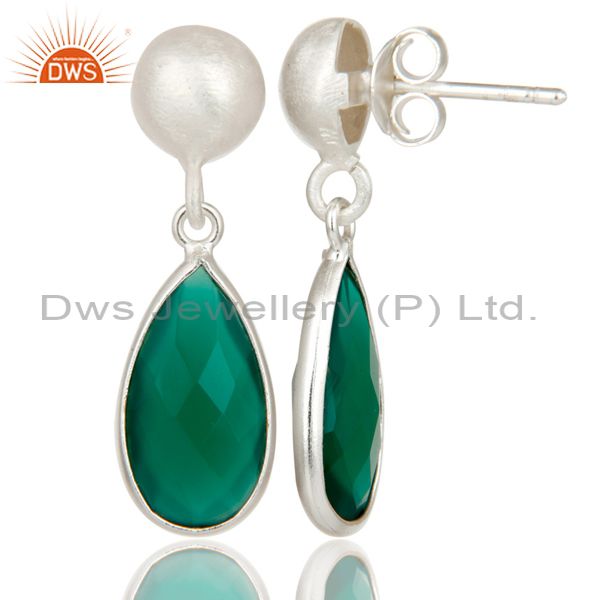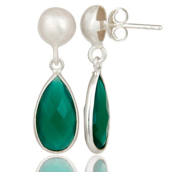 Solid Sterling Silver Green Onyx Gemstone Bezel Set Teardrop Earrings
