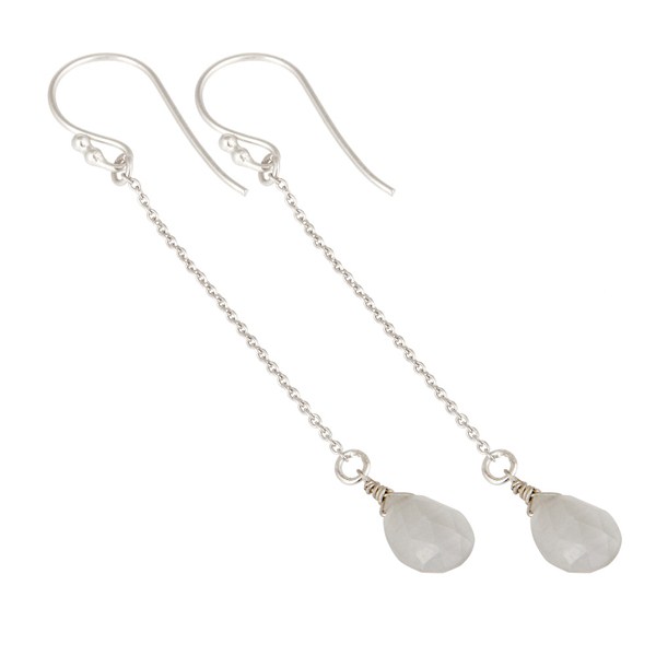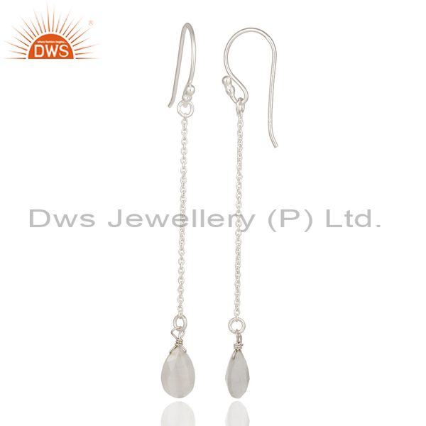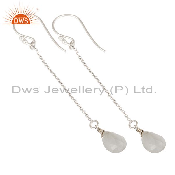 Solid Sterling Silver White Moonstone Chain Drop Earrings