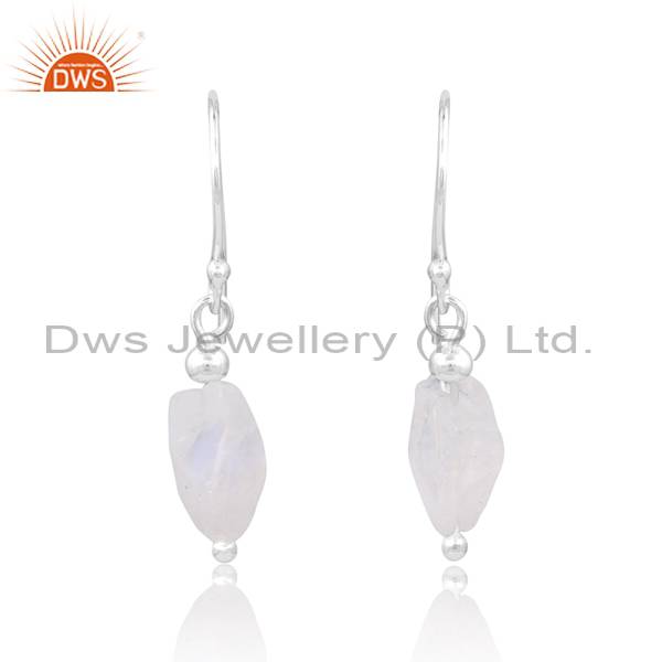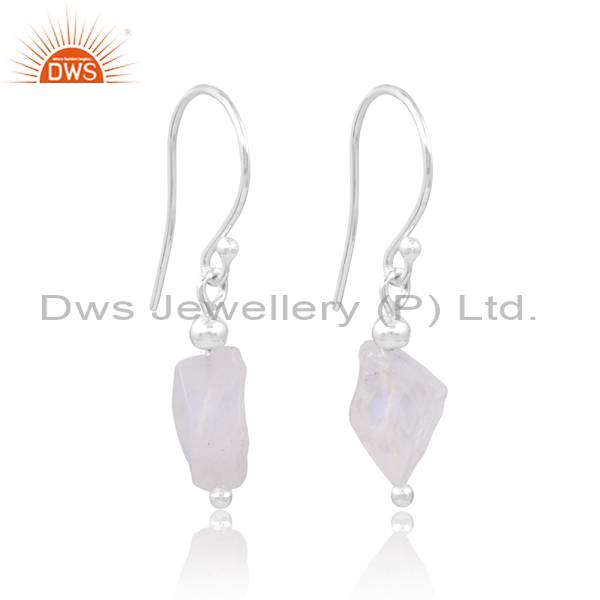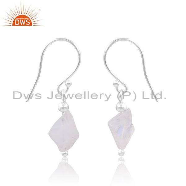 Sparkling Elegance: Rainbow Moonstone Silver Dangle Earrings