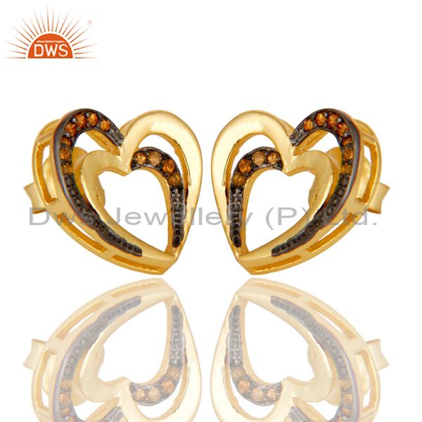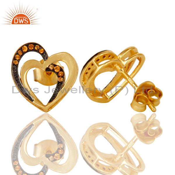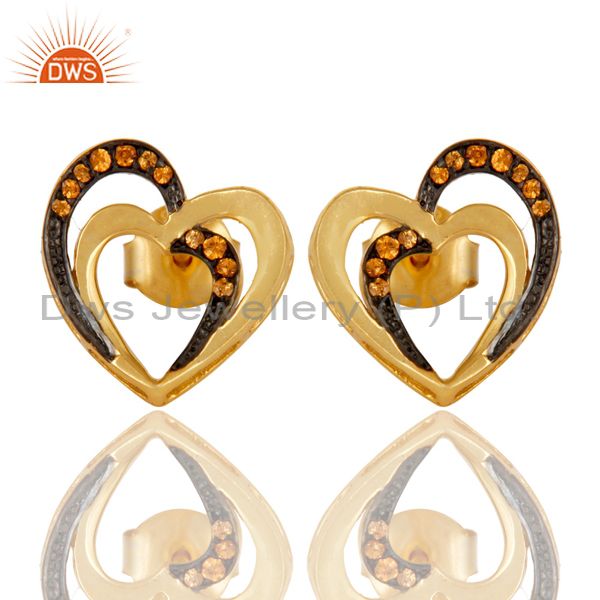 Spessartite and 18K Gold Plated Sterling Silver Heart Shape Ear Stud