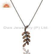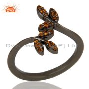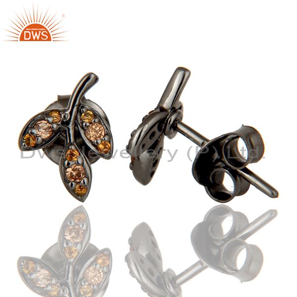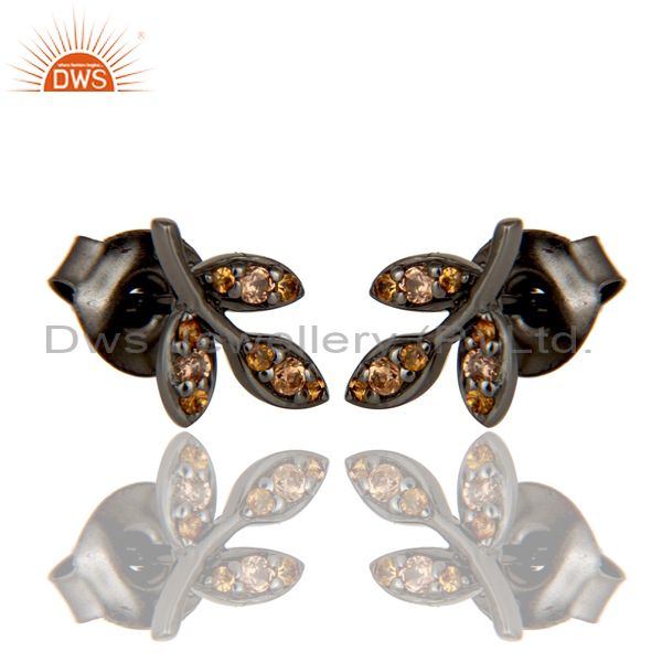Spessartite And Black Oxidized Sterling Silver Leaf Style Stud Earring