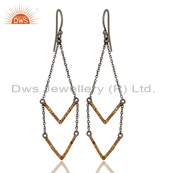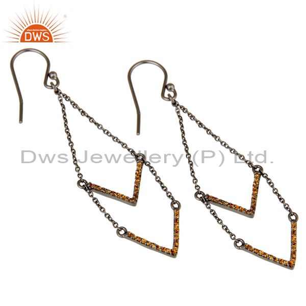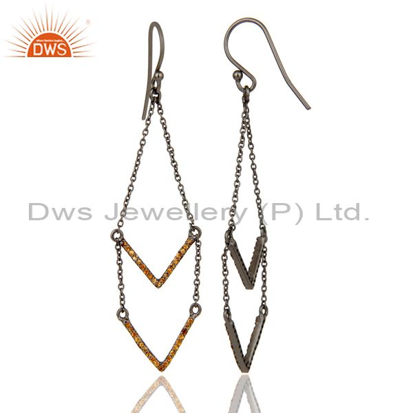 Spessartite and Black Oxidized Sterling Silver V shae Drop Dangler Earring