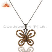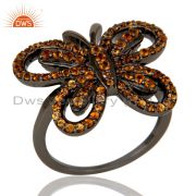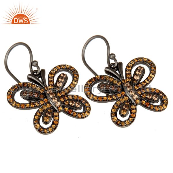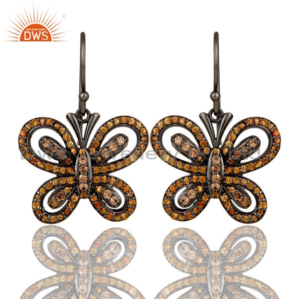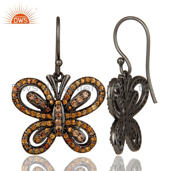 Spessartite and Oxidized Sterling Silver Butterfly Drop Earring
