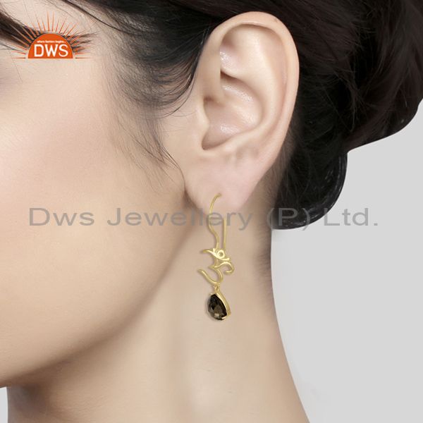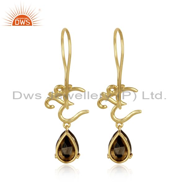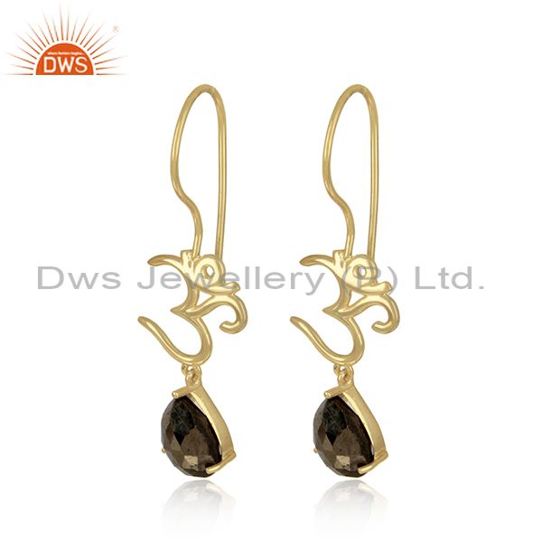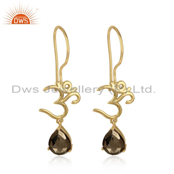 Spiritual Om Earrings in Yellow Gold on 925 Silver with Pyrite