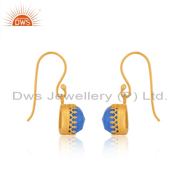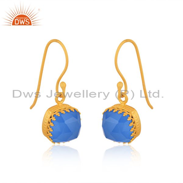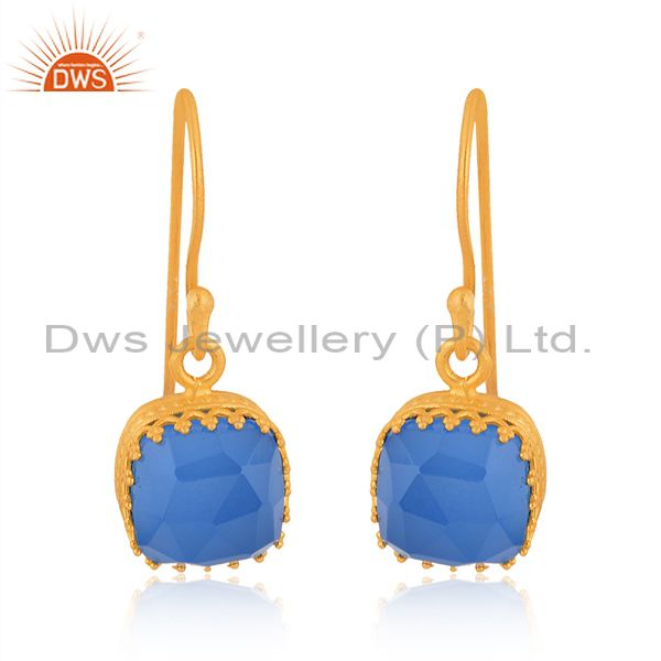 Square Blue Chalcedony Set Brass Gold Earwire Fancy Earrings