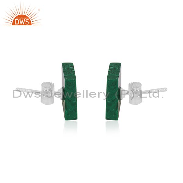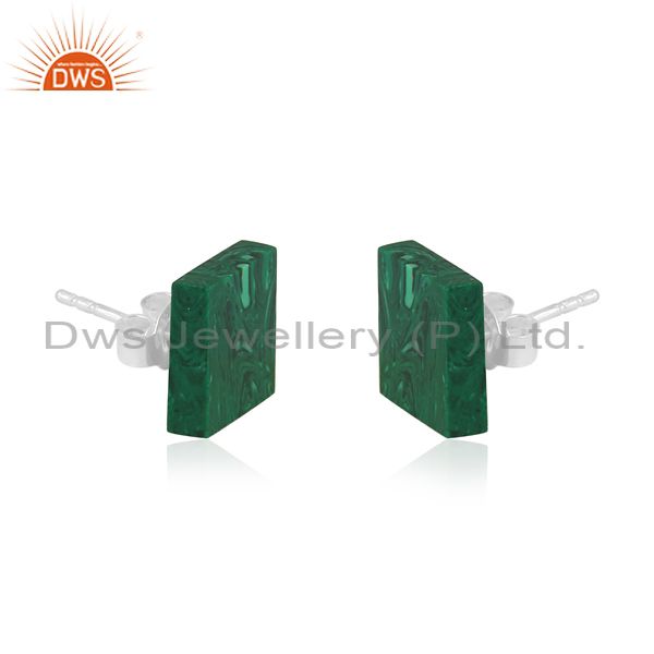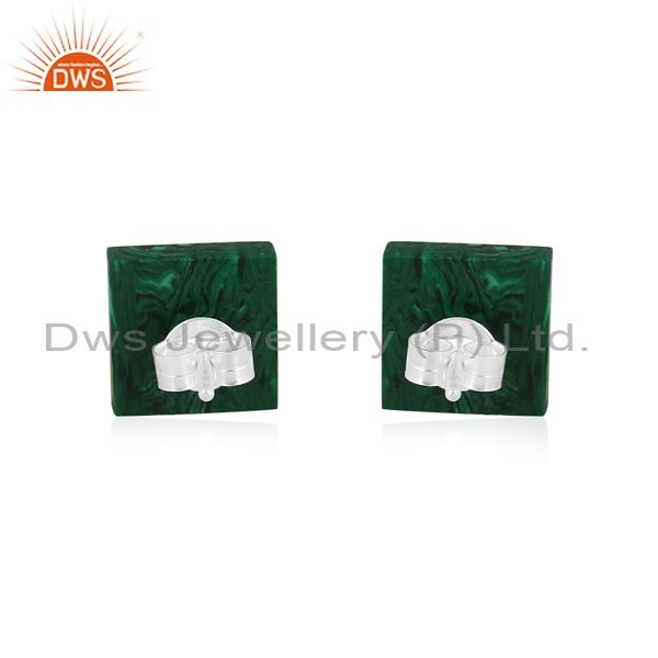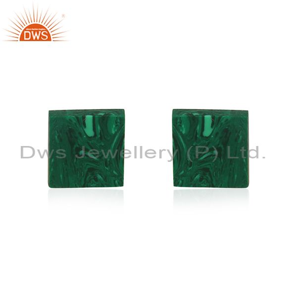 Square Cultured Malachite Coin Set Fine 925 Silver Earrings