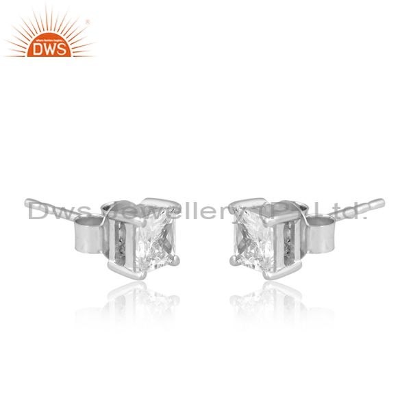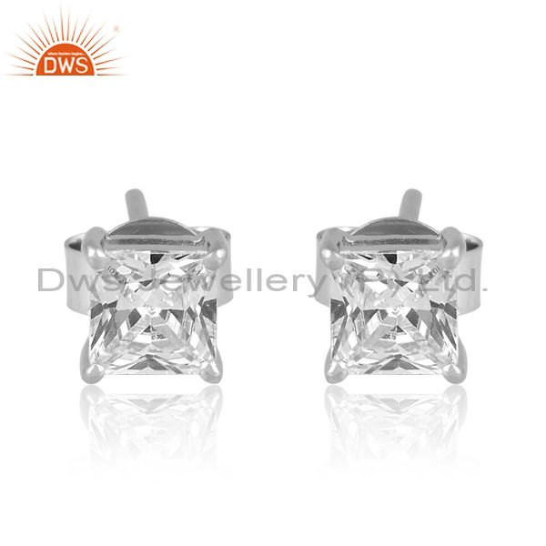 Square Cut Cz Sterling Silver Minimalist Stud Earrings