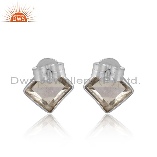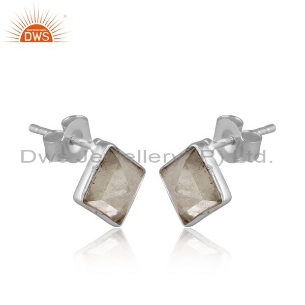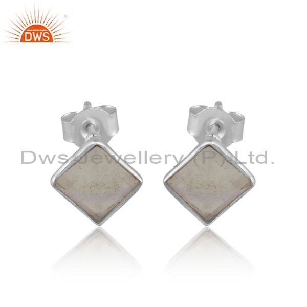 Square Cut Green Amethyst Set Fine Sterling Silver Earrings