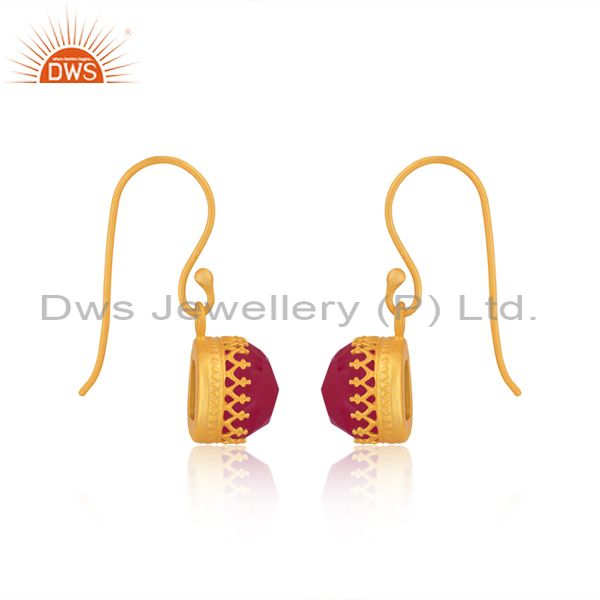 Square Cut Pink Chalcedony Set Brass Gold Earwire Earrings