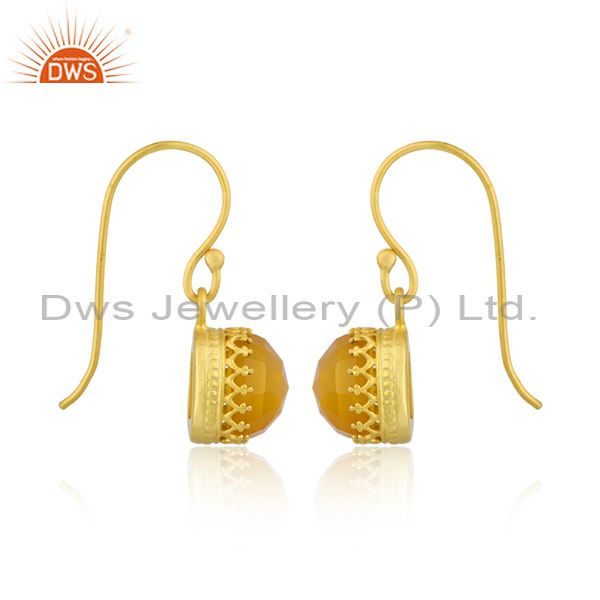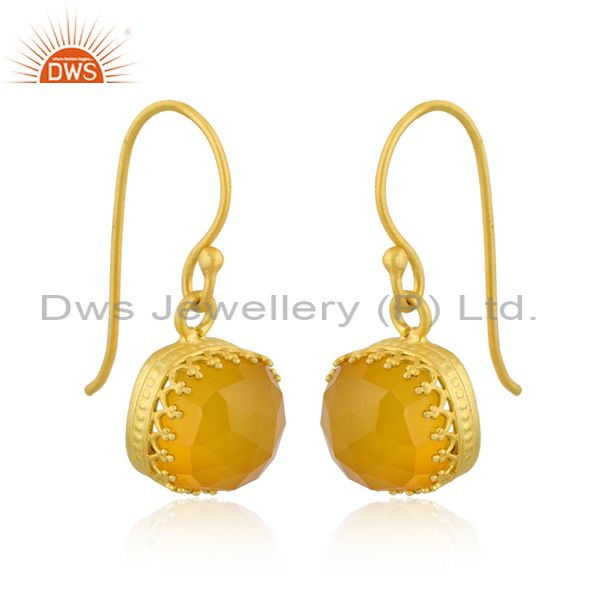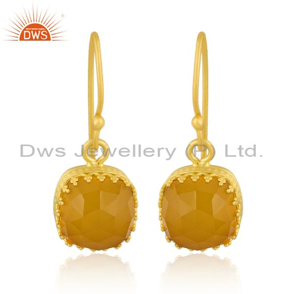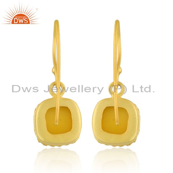 Square Cut Yellow Chalcedony Set Brass Gold Earwire Earrings