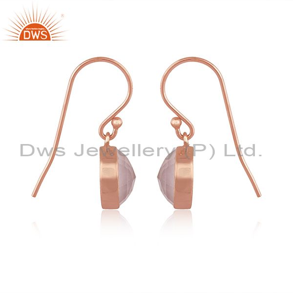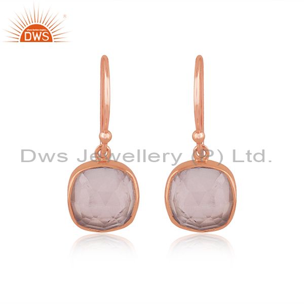Square Rose Quartz Set Rose Gold On Silver Earwire Earrings