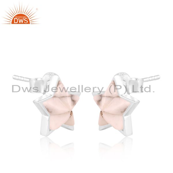 Star Cut Howlite Set Fine Silver Classy Statement Earrings