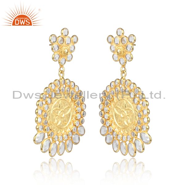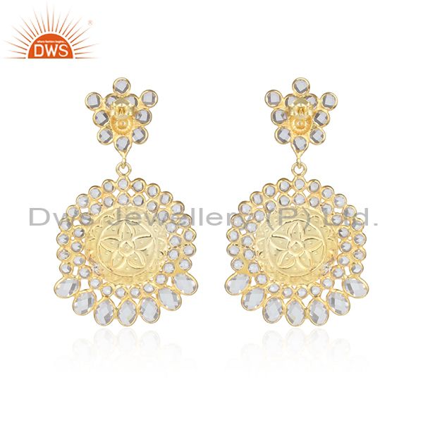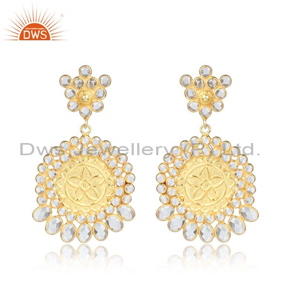 Star Design Gold Plated Silver Cz Gemstone Designer Earrings
