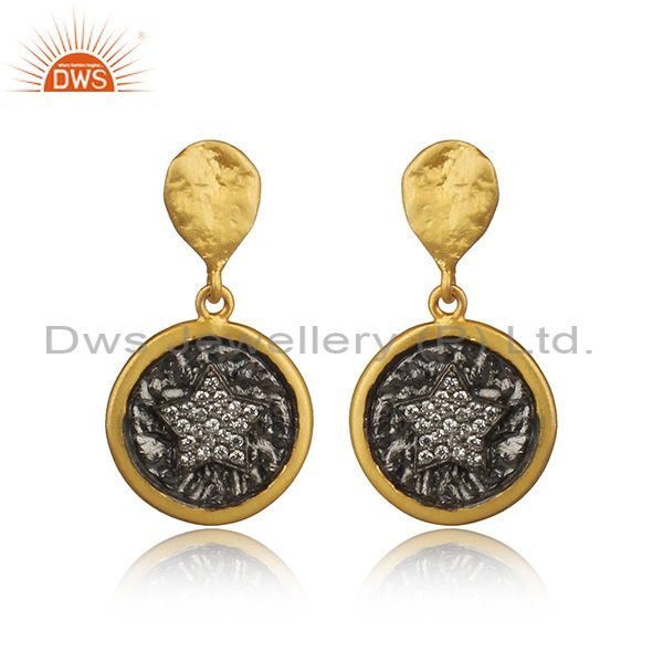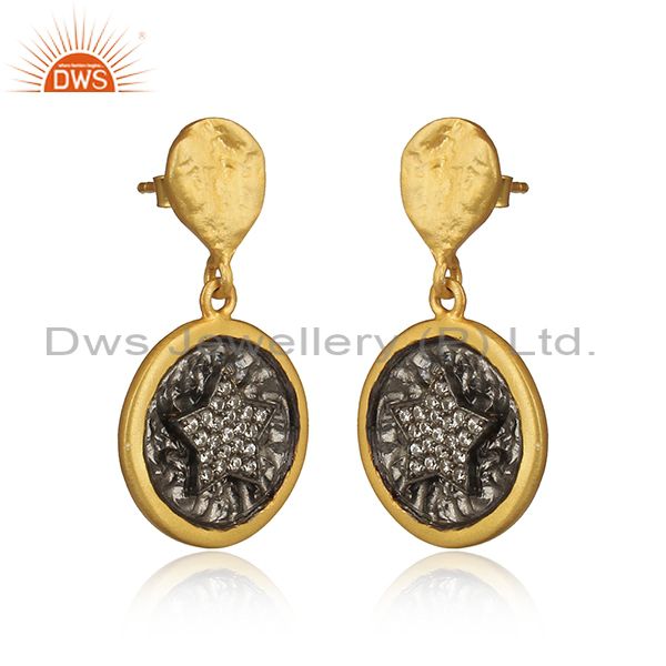 Star Design Rhodium and Gold on Silver Zircon Earrings