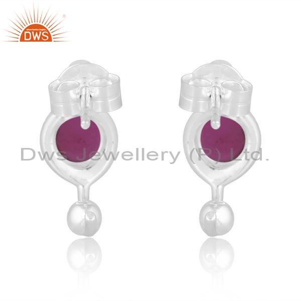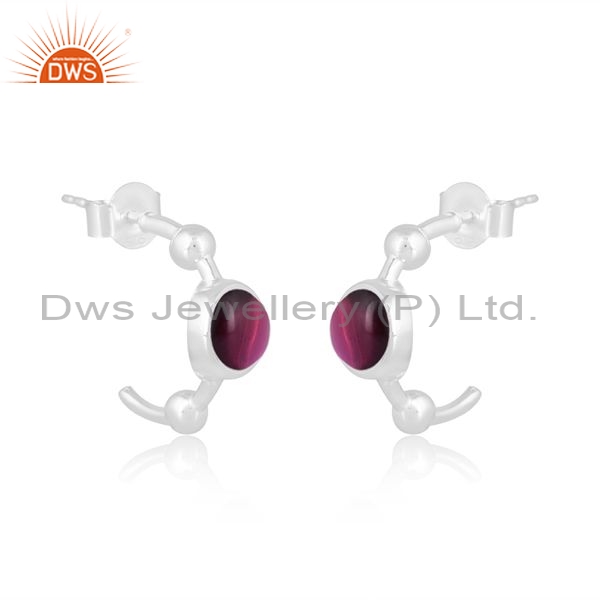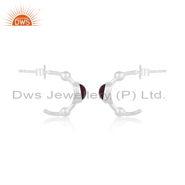 Sterling Silver White Earrings With Garnet Cabushion Round