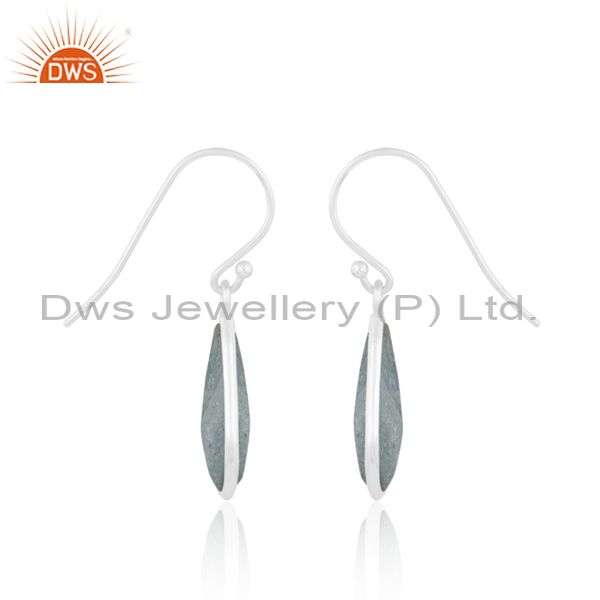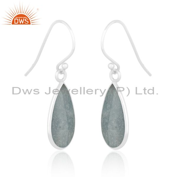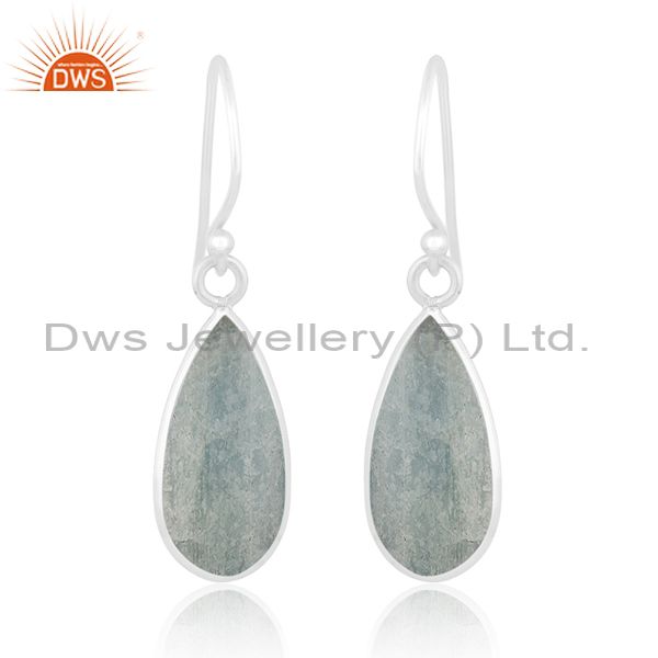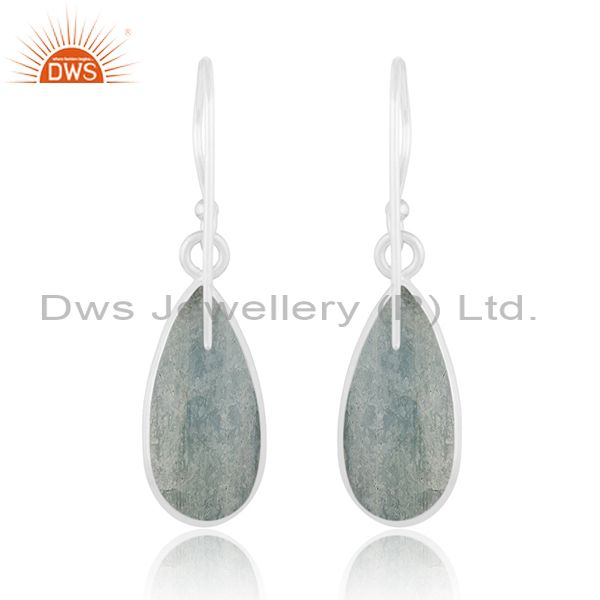 Sterling Earring With Aquamarine Briolette Pear Shaped Stone