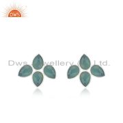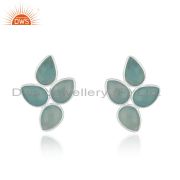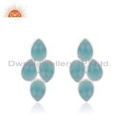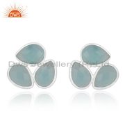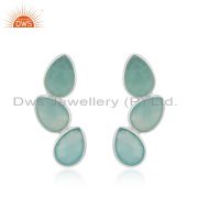 Sterling Fine Silver Aqua Chalcedony Gemstone Dangle Earrings Jewelry